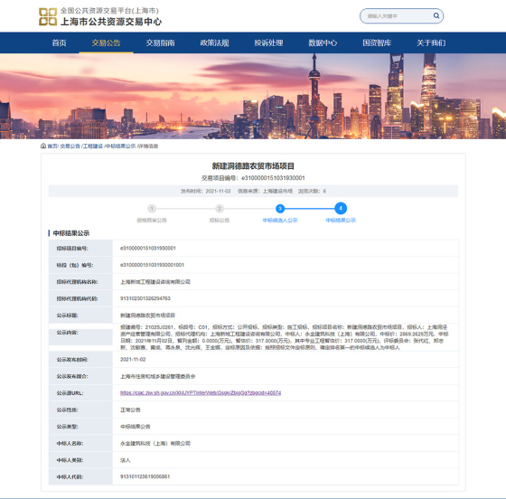 2021年11月02日,上海永金建设集团参与上海市住房和城乡建设管理委员会组织的《新建洞德路农贸市场项目》招标,在众多竞争对手的角逐下,最终以良好的信誉、丰富的行业经验、强大的技术实力、合理的报价赢得了招标单位的肯定,一举中标。本次中标再次见证了我司工作员工的辛勤付出,和公司的雄厚实力。 一份耕耘,一份收获,有志者,事竟成,每一次成功或突破,都离不开永金人的共同努力与付出,我们会以此中标为契机,...