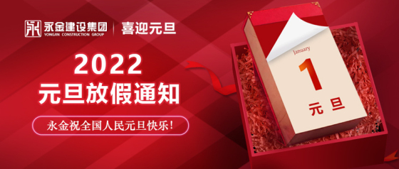 亲爱的客户、合作伙伴:2022年元旦即将来临,感谢大家过去一年对永金建设集团的支持,在此衷心地向各位客户伙伴道一声新年快乐。祝大家元旦快乐!财源广进!身体安康!万事如意!2021,感恩遇见您!2022,还请继续指教!根据国家法定假期规定和公司实际情况,永金建设集团元旦放假安排如下:2022年1月1日(星期六)-1月3日(星期一)放假,共3天,1月4日(星期二)开始正常上班。如您遇到紧急事件,可通过...